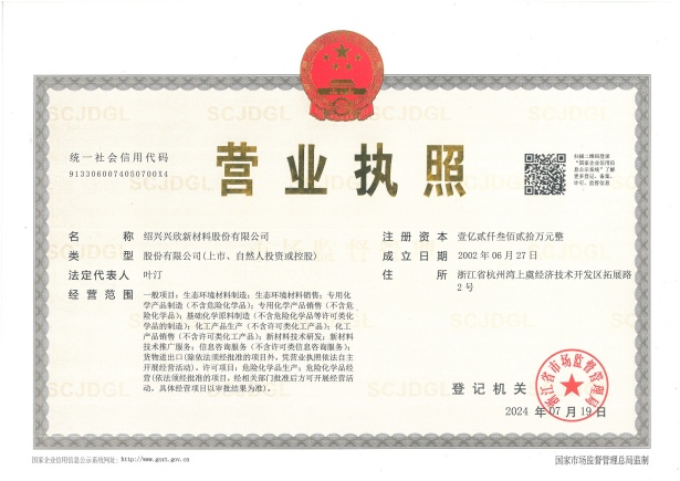 紹興興欣新材料股份有限公司成立于2002年06月27日,占地面積122畝,位于杭州灣上虞經(jīng)濟(jì)技術(shù)開發(fā)區(qū)拓展路2號(hào),現(xiàn)有職工200余人,專業(yè)技術(shù)人員50余人;博士、碩士研究生30余人組成的一支知識(shí)型、專業(yè)化的技術(shù)科研團(tuán)隊(duì)。公司面向全球市場,專業(yè)開發(fā)電子化學(xué)品、環(huán)保化學(xué)品、醫(yī)藥中間體、高分子材料等先進(jìn)新材料重點(diǎn)領(lǐng)域的省級(jí)科技型企業(yè);建有浙江上虞、安徽東至兩個(gè)生產(chǎn)基地。目前為“國家高新技術(shù)企業(yè)”、浙江省“隱形冠軍”企業(yè)、浙江省專精特新中小企業(yè);建有“省級(jí)”研究開發(fā)中心,共建天津大學(xué)浙江紹興研究院電子化學(xué)品研發(fā)中心。
